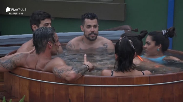 Os peões Tays Reis , Victória Villarim, Jakelyne Oliveira , Mariano, Lipe Ribeiro e Juliano Ceglia relaxaram no ofurô na tarde de terça-feira (22) e jogaram conversa fora. .